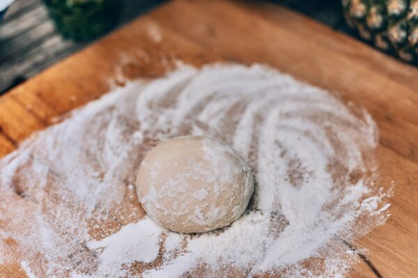 1. Neem een deegbol en wentel deze voorzichtig door bloem, semola (fijn tarwegriesmeel) of een mengeling van beide.